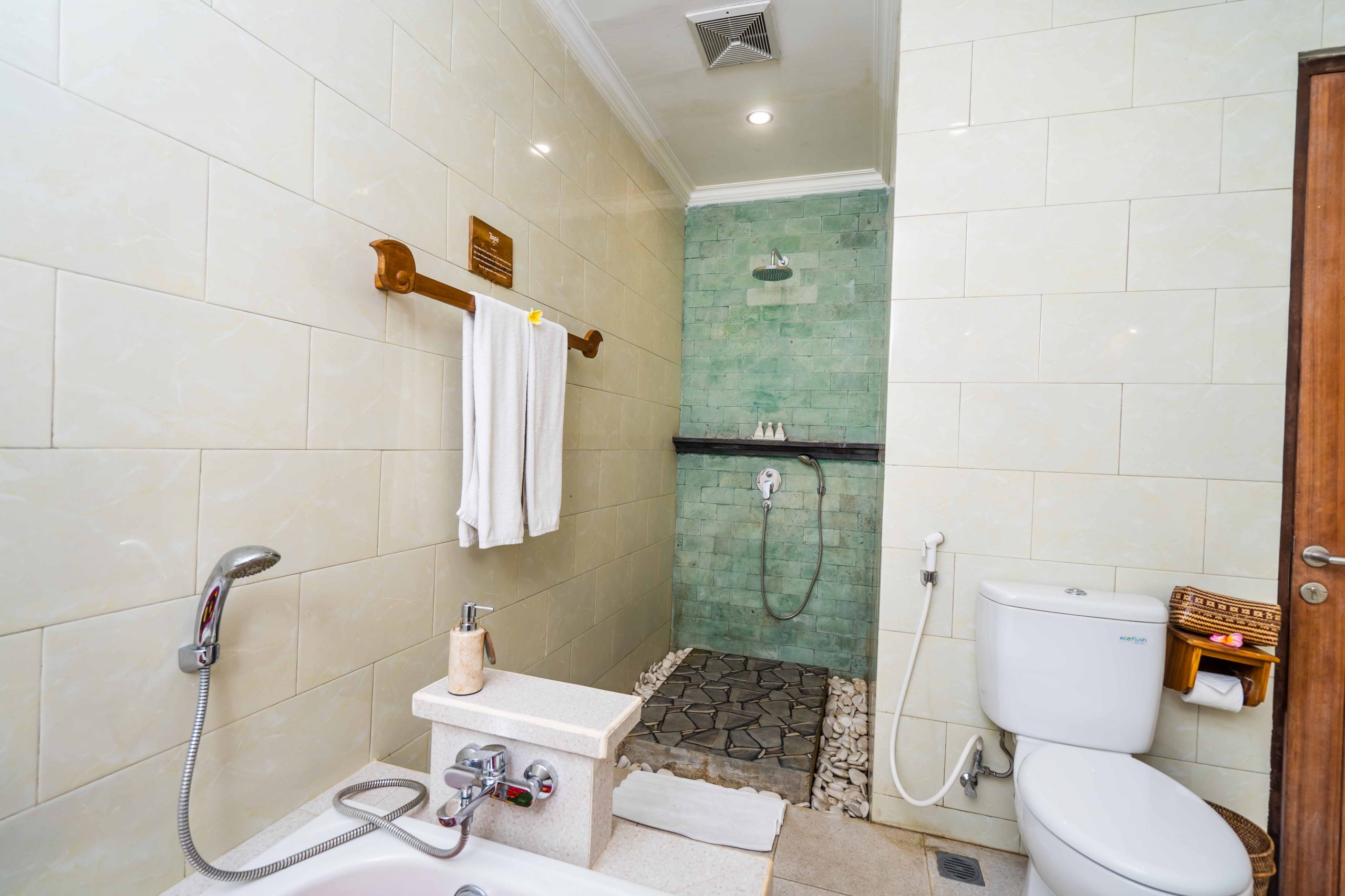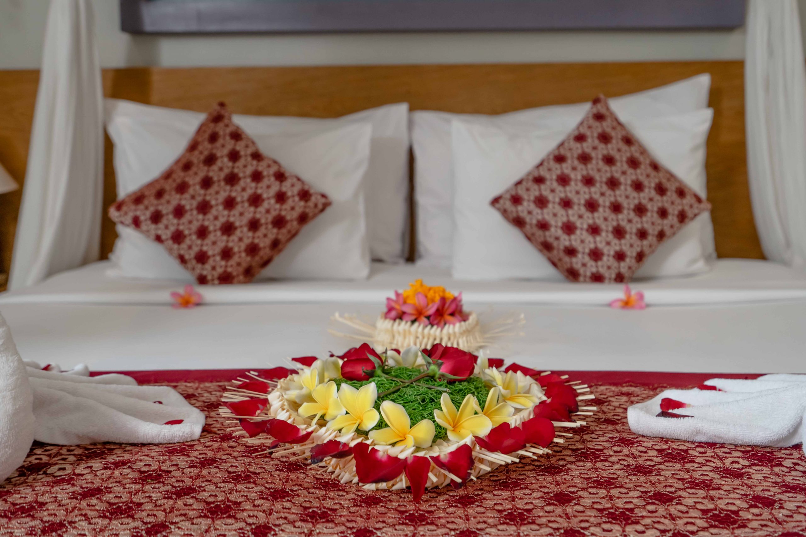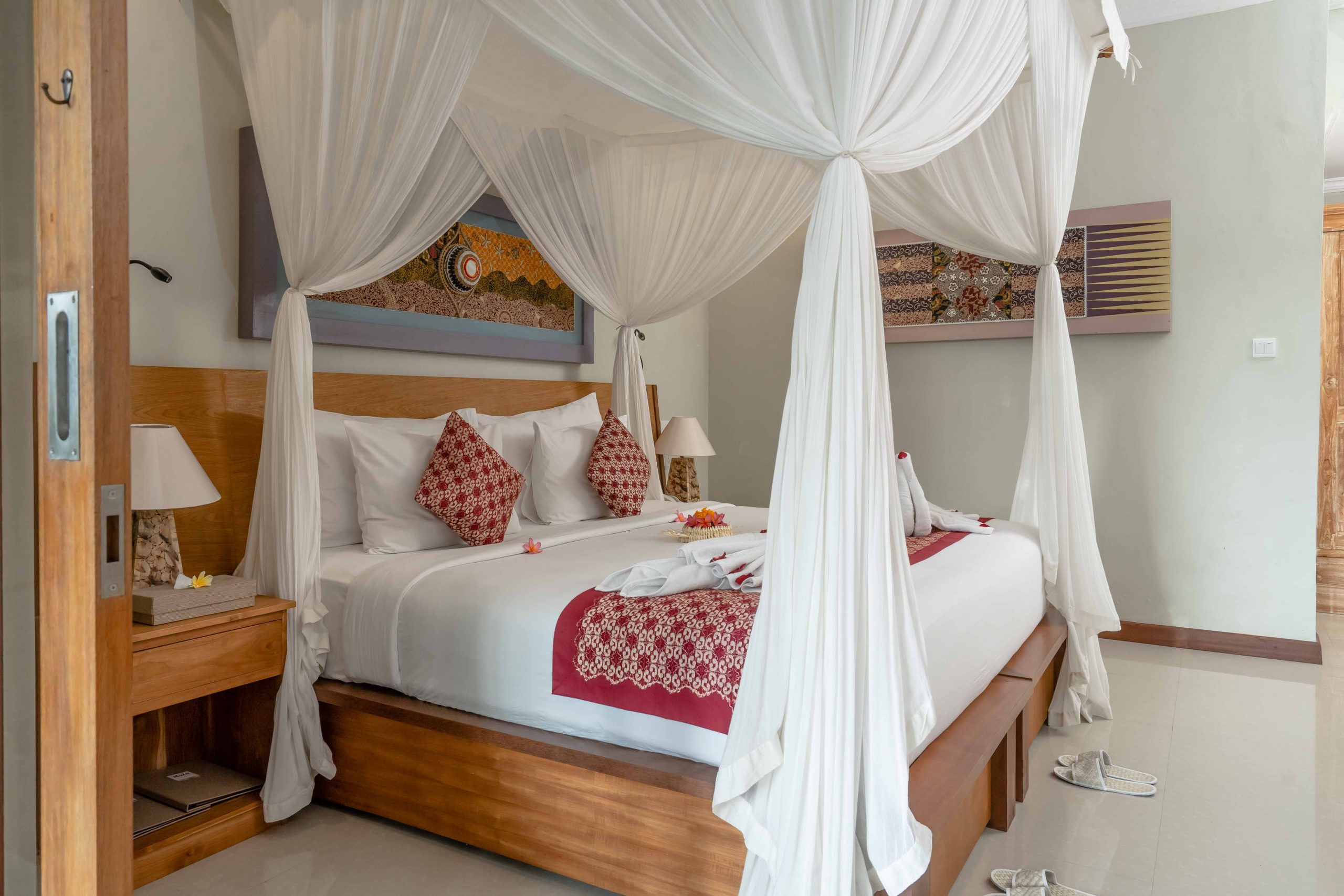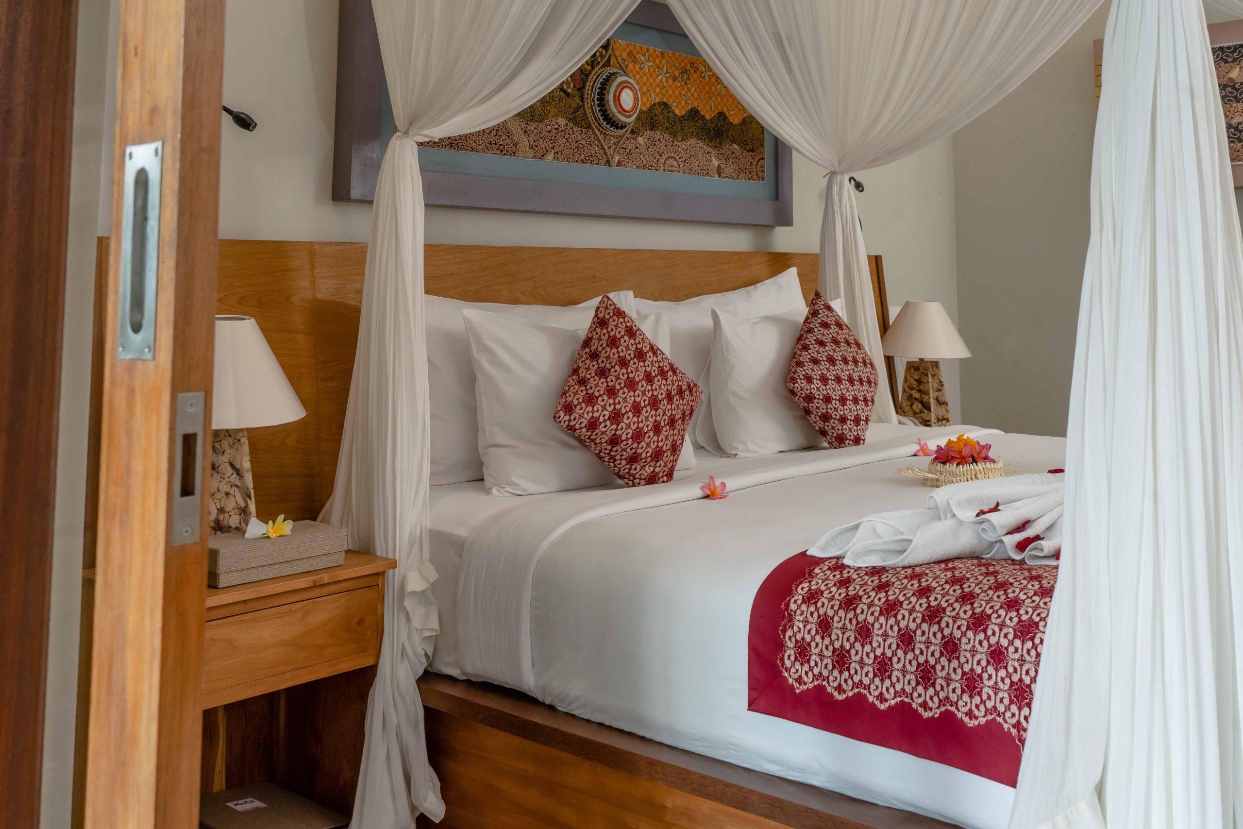 2 Deluxe Rooms the views by refreshing tropical lush gardens. 2 Deluxe Rooms are east of the pool firmly perched on the beautiful rice field area. Bird sound and quiet fibration of the area while letting you enjoy the lush greenery landscape and vegetation from the private balcony.